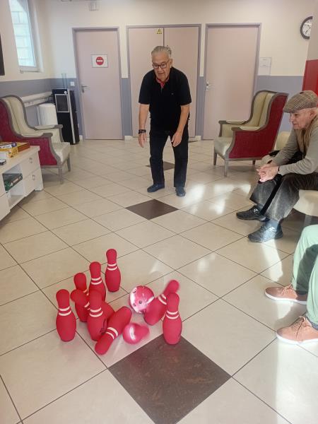 Chaque semaine, notre équipe d’animation conçoit des activités pour stimuler l’esprit, éveiller les sens et renforcer le lien social. Nous proposons notamment des moments de rires et d’adresse, comme le Bowling ou le Lancer de palets.