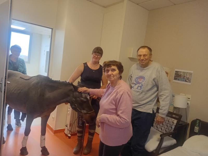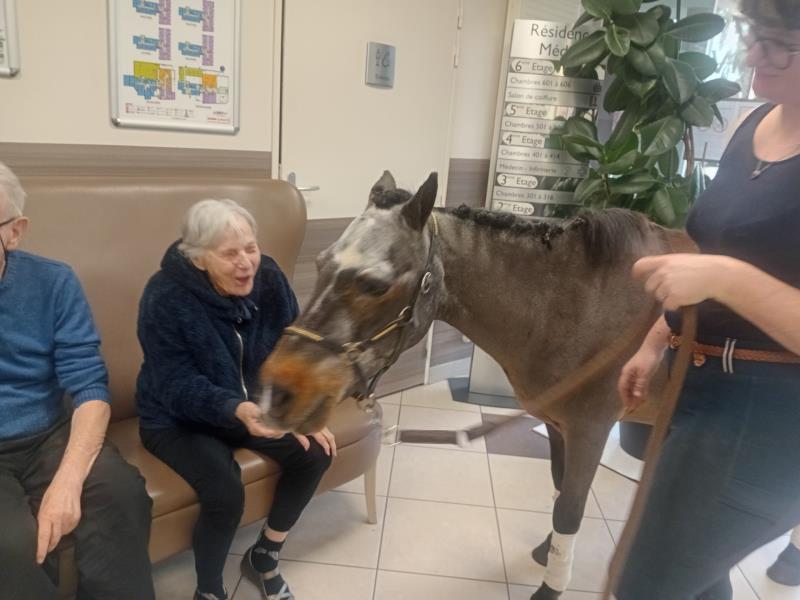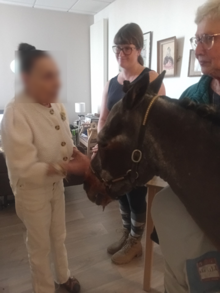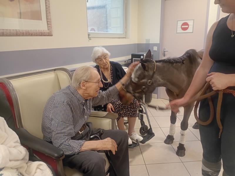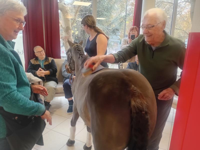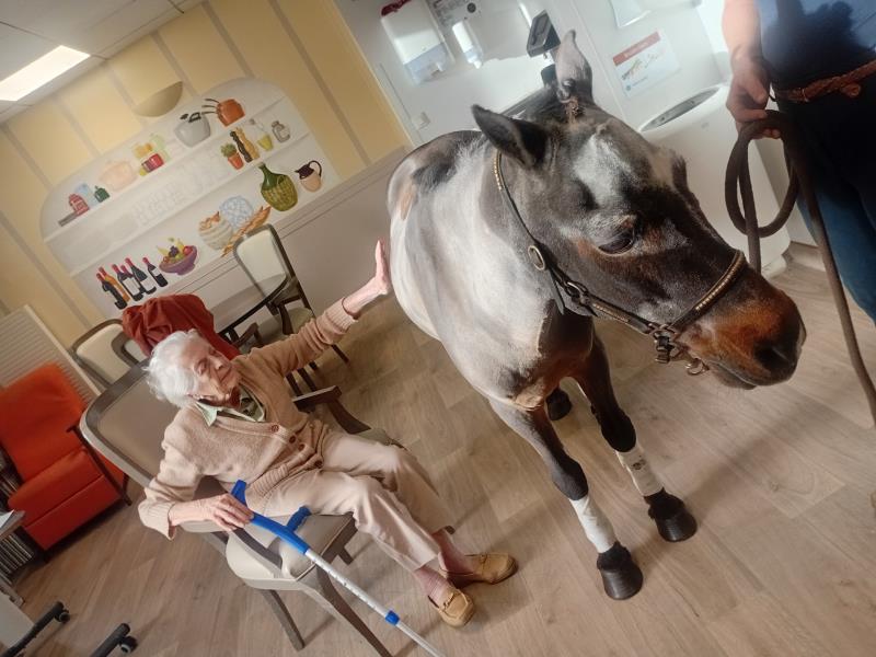 Pour clôturer la semaine en beauté, nos résidents ont eu la chance de vivre un moment exceptionnel : la visite d’un poney dans notre maison. Cette rencontre pleine d’émotion a apporté sourire, apaisement et émerveillement. Le contact avec l’animal, doux et bienveillant, a touché profondément nos résidents et créé un souvenir inoubliable.