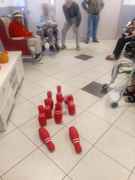 Au programme : du bowling et du lancer de palets pour stimuler l’adresse et la coordination, mais aussi pour partager quelques fous rires ! La gym douce a permis à chacun de bouger à son rythme, dans la bonne humeur, tandis que le loto a réuni nos résidents de l’unité protégée pour un moment de détente et d’échanges.