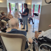 Publiée le 16/09/2025Chez DomusVi, chaque jour est une nouvelle mélodie de vie, tissée de rires, de partages et de doux moments de bonheur. Cette semaine, notre EHPAD a vibré au rythme d’animations musicales pleines de fantaisie : « Devinez les paroles » et un joyeux loto musical. Nos résidents, avec leur enthousiasm [...] Lire la suite