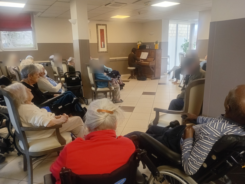 Pour clôturer cette belle semaine en apothéose, nous avons eu le bonheur de partager un magnifique concert de piano. Les notes élégantes de Mozart et de Bach ont rempli la salle d’émotion et de douceur, avant de laisser place à des chansons plus populaires, comme Les Champs-Élysées, que beaucoup ont fredonnées avec plaisir.