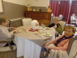 Nous avons célébré Pâques dans une ambiance festive et conviviale. Les résidents ont eu le plaisir d’assister au spectacle de Monsieur Amaury, un moment rempli de rires, de musique et de bonne humeur. Et bien sûr… la traditionnelle distribution de chocolats a ravi les papilles de tous !