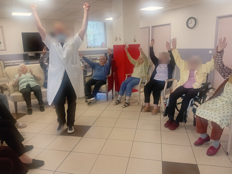 Cette semaine a été rythmée par des moments riches en partage et en bonne humeur. Les résidents ont débuté avec de la gym douce pour entretenir leur mobilité en douceur, dans une ambiance conviviale et encourageante. Un atelier créatif autour de Pâques a permis à chacun de participer à la décoration des tables, favorisant la motricité fine et la fierté du travail accompli. Une projection sur grand écran a offert un véritable moment d’évasion avec des spectacles variés mêlant patinage, danse de couple, natation synchronisée et autres disciplines artistiques. Une journée orientale a apporté une ambiance chaleureuse et dépaysante, avec musique, danse et dégustation de douceurs orientales. Une sortie au marché a également été organisée, permettant de profiter de l’extérieur, de stimuler les sens et de maintenir le lien avec la vie locale. Tout au long de la semaine, de nombreuses activités ont contribué à stimuler la mémoire, entretenir l’activité physique, encourager les échanges et surtout préserver le plaisir et le bien-être de chacun au quotidien.